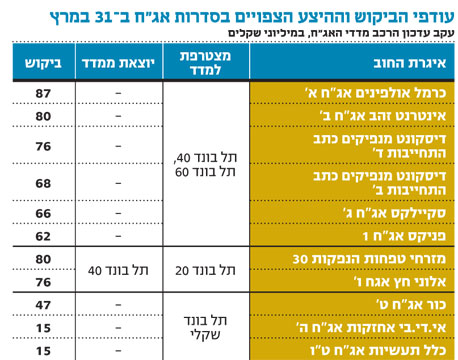 מסחר הנעילה ביום רביעי הבא ירכז גם את עדכון הרכב מדדי האג"ח הקונצרניות. בעדכון זה, לראשונה, לתעודות הסל על מדד האג"ח השקליות המנהלות כ־850 מיליון שקל תהיה השפעה על האג"ח שייכנסו או ייצאו מהמדד. בטבלאות המצורפות נצפים עודפי הביקוש וההיצע הצפויים לסדרות האג"ח השונות.
