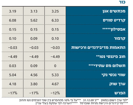 "בשולי הדברים נציין כי ירידת פער התשואות בשלושת הרבעונים האחרונים מחקה את ירידות הערך לחלוטין ולא באופן חלקי, ולא זו בלבד, אלא שהקרן ההונית נהפכה במהלך 2009 לחיובית וב־31 בדצמבר הסתכמה בסכום חיובי של 309 מיליון שקל (לאחר השפעת מס)".