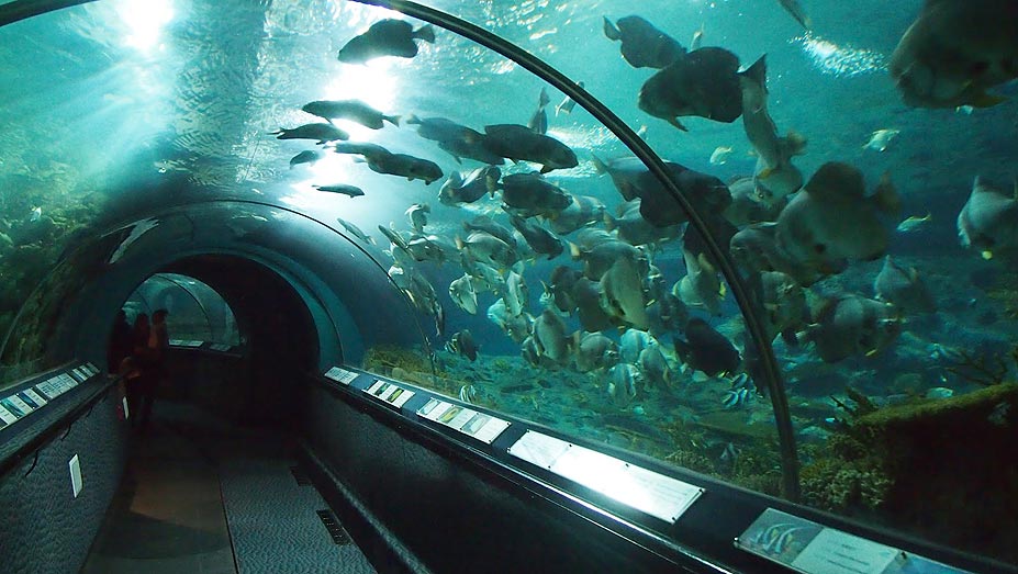 אקווריום האוקיינוס של שנגחאי, שנגחאי. המבקרים כאן יכולים בקלות לרדת לעומק של 155 מטרים בלי לעבור קודם לכן קורס צלילה. האקווריום שממוקם בעומק זה מציג ריפי אלמוגים, מערות של אצות ים כשבמקביל צבי ים, דגי מאנטה ריי ועוד 450 זנים של דגים שוחים מסביב. כדאי לתזמן את הביקור כך שתצפו בהאכלות של הכרישים, המתבצעות פעמיים ביום