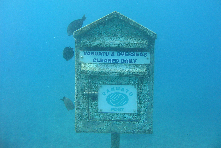 משרד דואר תת ימי, ונואטו. במשרד הדואר התת ימי הראשון בעולם, בעומק 3 מטרים, ובמרחק 45 מטרים מהאי, שנחשב כשמורת טבע לחיי הים, לא צריך להתמודד עם התורים הארוכים אלא דווקא עם קבוצות של דגים. בפברואר 2012 פגעה סערת הציקלון ג'זמין במבנה, כך שכיום הדוורים המכוסים בציוד הצלילה הוחלפו בתיבת דואר צהובה ולא מאוישת