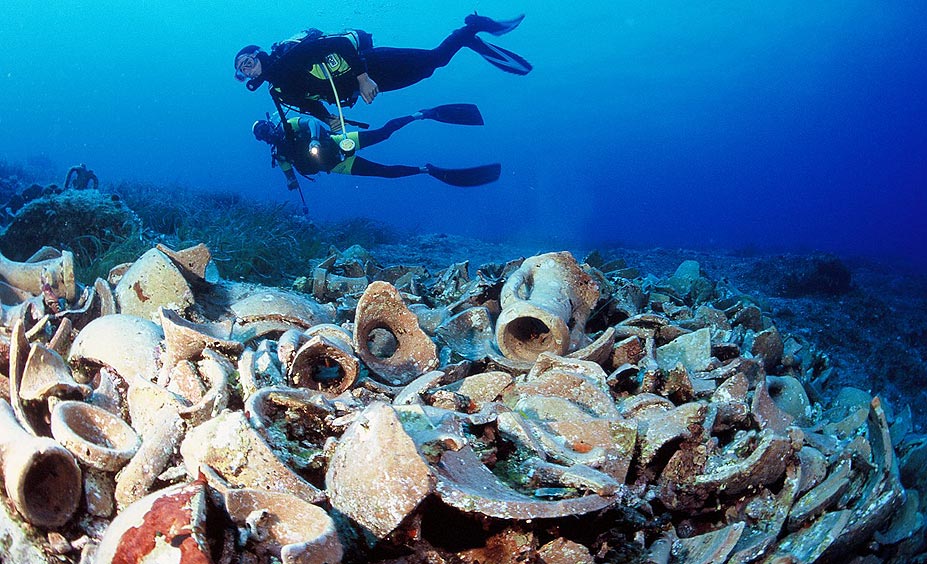 הגן הארכיאולוגי תת הימי של באיה, פוזולי, איטליה. בשל תופעה בשם ברדיסייסמיות, שמתארת את ההתרוממות או השקיעה ההדרגתית של הקרקע, שכונת באיה המרוחקת 30 דקות נסיעה מערבית לנאפולי, שוכנת כיום בין 1.5-4.5 מטרים בתוך המים. סיורי צלילה מודרכים עוברים בשמונה אתרים תת ימיים, ביניהם וילה פרוטירו (Villa Protiro) ופורטוס יוליוס. רצפות פסיפס בשחור ולבן, פסלים משוחררים וציורי קיר מתערבבים עם כוכבים ושושנות ים