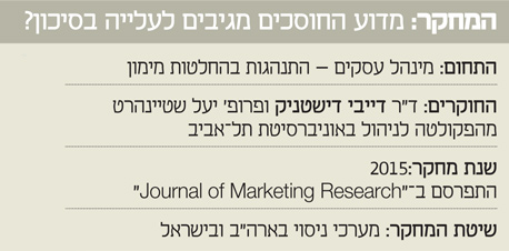 מרבית האנשים הם שונאי סיכון, ואת חסכונותיהם הפרטיים ייטו להשקיע בשמרנות. לכן ד"ר דייבי דישטניק ופרופ' יעל שטיינהרט הופתעו לגלות, לאחר שבחנו מסד נתונים ענק המתייחס להרגלי החיסכון בהולנד, שגם אם החלטת ההשקעה הראשונית שקיבלו החוסכים תאמה את תיאבון הסיכון שלהם לאורך זמן, ואף שרמת הסיכון בשוק עלתה, הם לא שינו את החלטתם. כפועל יוצא מכך רמת הסיכון בחיסכון שלהם היתה גבוהה מאוד ביחס לרמת שנאת הסיכון שלהם.