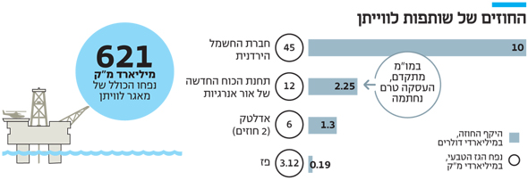 שנית, שותפות לוויתן מקוששת בחודשים האחרונים חוזים רבים ככל שניתן כדי להשלים את מקורות המימון שלה לפיתוח לווייתן. רק השבוע דיווחו דלק קידוחים ואבנר על סגירת החלק שלהן לפיתוח השלב הראשון למאגר שנאמד בכ־3.8 מיליארד דולר, מתוכו חלקה של דלק יגיע עד ל־1.75 מיליארד דולר. מי שעוד לא השלימו את כלל מקורות המימון שלהן הן רציו שמחזיקה שם 15% ונובל שמחזיקה 40%.