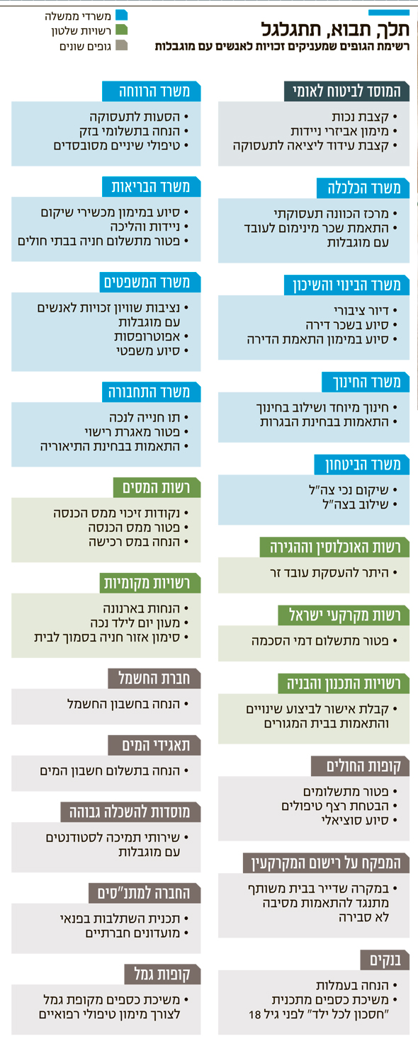 אדם עם מוגבלות צריך לרדוף אחר לא פחות מ־22 גופים ממשלתיים כדי לממש את זכויותיו הכלכליות הבסיסיות ביותר - מקצבת נכות, דרך תו חניה מיוחד ועד הנגשת דירת מגורים. המדינה מתעלמת כבר 12 שנה מהמלצות להקמת מערך אחד שייתן לאוכלוסייה זו מענה כולל, ורק בשנה האחרונה נזכר משרד הרווחה להתניע הקמת מינהלת ייעודית ש"תסייע במיצוי הזכויות"