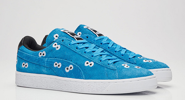 שיתוף הפעולה הטרי בין פומה ל"רחוב סומסום" הוליד ארבעה זוגות נעליים שלא מעט חכמולוגים ישמחו לשים עליהם רגל. הסדרה מורכבת משני דגמים: Basket הקלאסי, בשחור או לבן עם דיוקנאות של אריק, בנץ ושאר החברים; ודגם זמש קצת מעניין ומרומז יותר בכחול או אדום, עם העיניים האיקוניות של עוגיפלצת. 105 דולר.