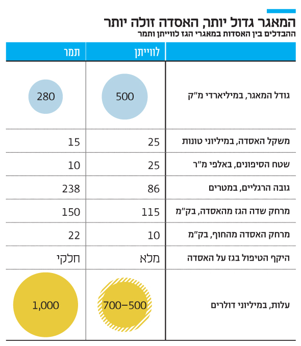 לשם השוואה, עלות האסדה שהוצבה במאגר תמר בתחילת העשור עמדה על כמיליארד דולר וזאת חרף העובדה שמאגר תמר קטן משמעותית ממאגר לווייתן (280 מיליארד מ"ק לעומת 500 מיליארד מ"ק). הזמנת האסדה מסיימת בפועל את שלב הרכישות הגדולות שדרושות לשותפות בלווייתן כדי להתחיל את פיתוח המאגר.