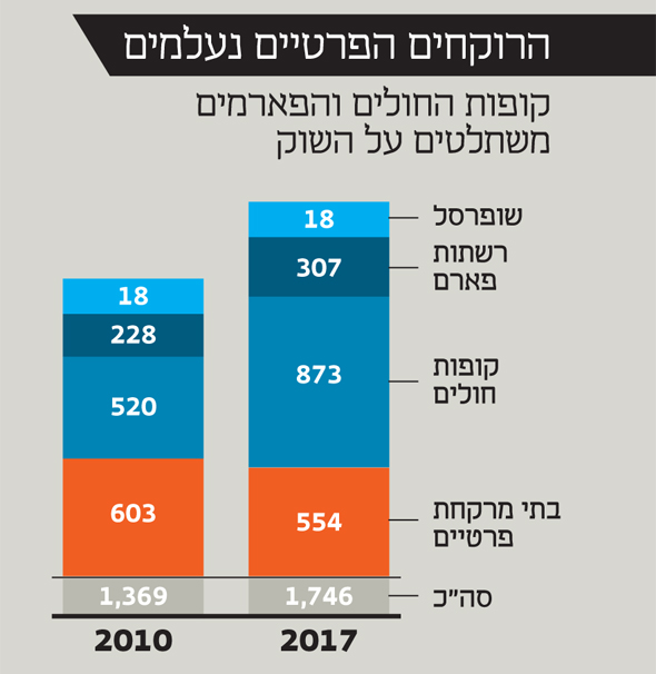 הוא מכיר היטב את המספרים שמעידים על כך שענף בתי המרקחת עובר תהליך אינטנסיבי של ריכוזיות: ב־2010 כמעט מחצית מבתי המרקחת, 45%, היו בידיים פרטיות. כיום הפרטיים מהווים כ־30% מהשוק בלבד. לפי נתונים שמספק צח ברקי, מנהל אגף כלכלה ומידע בדן אנד ברדסטריט, 50 בתי מרקחת פרטיים נסגרו במרוצת השנים הללו, בשעה שרשתות הפארם הוסיפו עוד כ־80 סניפים, ואילו קופות החולים פתחו עוד יותר מ־350.