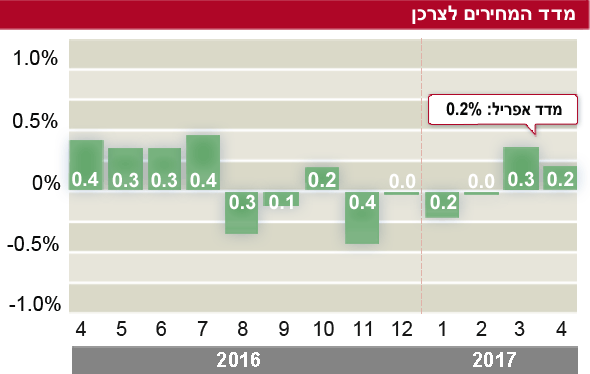 העלייה במדד - ב-0.1% מעל הצפי בשוק ההון; ב-12 החודשים האחרונים עלה המדד ב-0.7% והוא מתקרב לטווח התחתון של יעד האינפלציה; מדד מחירי הדירות ירד בפברואר-מרץ ב-0.5%