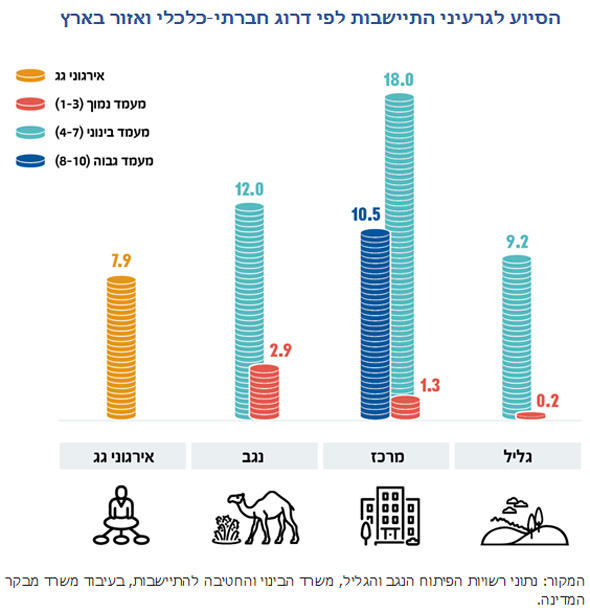 המבקר קובע כי "פעולות פסולות אלו הביאו לכך שמשרד הבינוי והחטיבה להתיישבות קבעו אמות מידה למתן הסיוע כך שלא היה הבדל בין עמותות שפועלות בישובים מוחלשים לבין אלו שפועלות ביישובים חזקים. הסיוע התקציבי, שנועד לקבוצות התיישבות הפועלות ביישובים ובאזורים מוחלשים, הוסט בחלקו הניכר לתמיכה בעמותות הפועלות בקרב אוכלוסיות מבוססות במרכז הארץ".