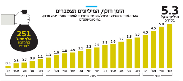 לידי "כלכליסט" הגיעו חשבוניות שכר הטרחה הסודיות שהועברו מדי חודש ממשרד עורכי הדין הגדול לכנ"ר ואשר אושרו על ידי סגניתו עו"ד סיגל יעקבי, שנבחרה בשבוע שעבר לכהן כמחליפתו של האן. מהחשבוניות עולה כי מאז נכנסה הרשות להליך פירוק באוגוסט 2014 ועד אפריל 2016 גבה משרד עוה"ד יגאל ארנון מעל רבע מיליון שקל בחודש. יתר החשבוניות ששולמו למשרד מאז אינן בנמצא, אך בהנחה שגובה שכר הטרחה נשאר פחות או יותר דומה, הרי ששכרו המצטבר של המשרד תפח ב־3.25 מיליון שקל נוספים ובקרוב מאוד יעמוד על 9 מיליון שקל.