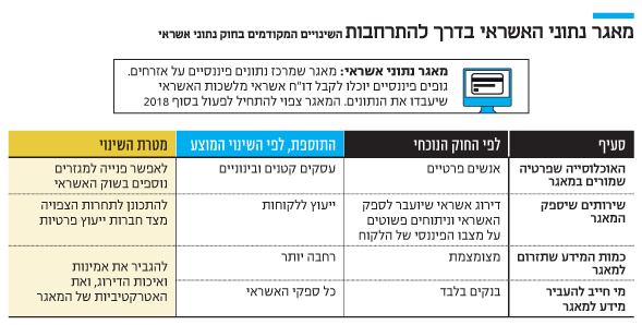 כדי לבצע את השינויים הללו יש צורך בשינוי התקנות של חוק נתוני אשראי, כך שמרחב הפעולה של לשכות השירות יגדל. לשם כך על בנק ישראל להגיע להבנות מול משרדי האוצר והמשפטים.