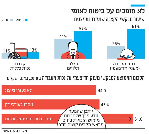 שלוש שנים מאישור החוק שנועד לרסן את החברות למימוש זכויות, שיעור הפונים שנעזרו בהן ובעורכי דין לקבלת קצבה עלה בעשרות אחוזים. במוסד לביטוח לאומי טוענים לעלייה גם בפניות ללשכות הייעוץ החינמיות