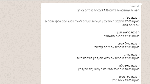רשימת מוקדי ההפגנות (המידע מופץ ברשתות החברתיות)