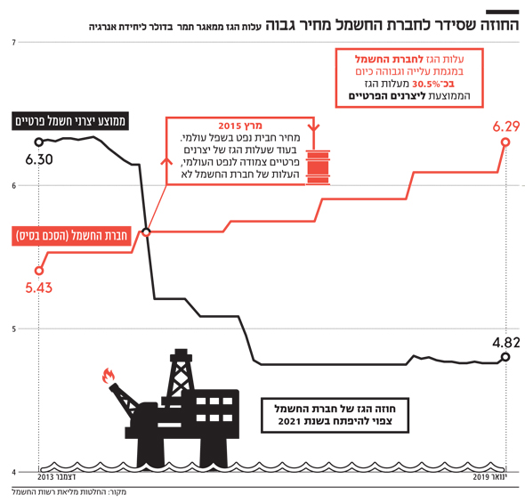 הסיבה לשיא היא שרשות החשמל טרם אישרה את הסכם פתיחת החוזה. ברשות ניתחו בשבועות האחרונים את תמחור הגז של חברת החשמל לאורך השנים. למרבה הצער, התברר שאם בתחילת הדרך של מאגר תמר שהחל לעבוד ב־2013 מחיר הגז של תחנות הכוח הפרטיות היה גבוה יותר ממחיר הגז של חברת החשמל, באמצע 2015 נרשם היפוך (ראו תרשים).