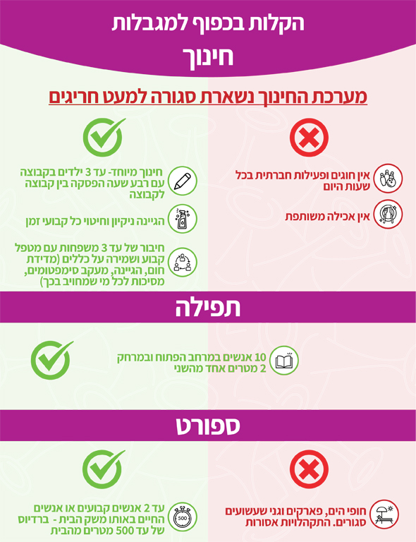 - מה מותר ומה אסור? לרשימת הקלות המלאה של משרד הבריאות לחצו כאן