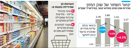 מכירות שוק המזון בחודש ינואר הסתכמו ב־3.17 מיליארד שקל, ההיקף הנמוך ביותר זה ארבע שנים. הסיבות העיקריות: מותג פרטי זול ומודעות צרכנית