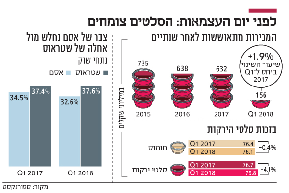 מכירות הסלטים חוזרות לצמוח ברבעון הראשון של 2018 לאחר שנפגעו בשל הירידה בצריכת הבשר ומשבר הזיהומים. הצרכן עדיין לא חזר להאמין בחומוס