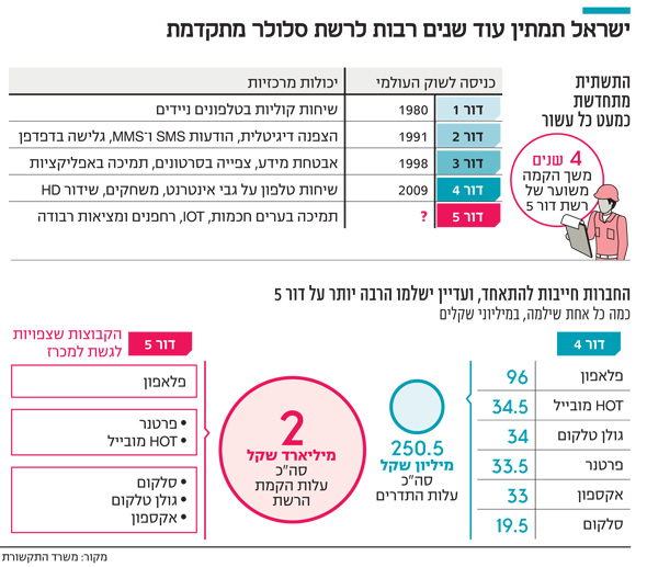 כמעט כל עשר שנים, ולעתים אף פחות, מתקדמת הרשת הסלולרית בישראל לדור הבא. ב־2009 החלו לפעול פה תדרים של דור 4, ולפי כל הצהרות משרד התקשורת, היינו צריכים לראות פה מזמן כבר את תחילת הפריסה של הדור החמישי, דבר שאמור להיות טריוואלי עבור כל מדינה מתקדמת — בטח לאור קצב גידול צריכת הנתונים של אזרחי ישראל.