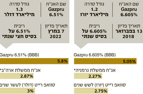ענקית הגז הרוסית, שחולשת על 18% מעתודות הגז העולמיות, מציעה איגרות חוב נקובות בדולר וביורו בתשואות לפדיון של 5.8% ו־5.05%