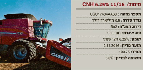 איגרת החוב: זרוע הפיננסים, CNH Capital, הנפיקה אג"ח שמשלמת קופון חצי שנתי של 6.25% לטווח של חמש שנים. החברה־האם CNH ערבה לחוב במלואו והתחייבה גם להמשיך ולהחזיק בשליטה בחברה־הבת ולהבטיח את המימון ולפקח על המינוף שלה. מהערבות לחוב, כמו גם מהעובדה שזרוע המימון מהווה נדבך מרכזי במודל העסקי שלה, ניתן להסיק כי האג"ח של החברה־הבת כמוה כאג"ח של החברה־האם מבחינת הסיכון הכרוך בה. בכל מקרה, האג"ח מספקת תשואה הולמת ותתאים כחלק מתיק גלובלי של חברות שהן מתחת לדירוג השקעה.