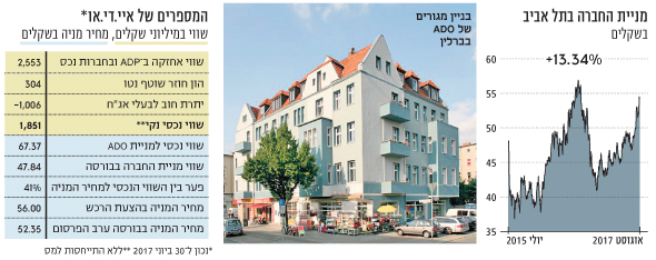 19,124 יחידות דיור בברלין בשווי של 2.6 מיליארד יורו. הפורטפוליו של ADP הניב במחצית הראשונה FFO (רווח חשבונאי בנטרול הכנסות והוצאות חד־פעמיות, שיערוכי נכסים, מכירת נכסים, פחת והפחתות וכדומה) של 26.7 מיליון יורו בהשוואה ל־FFO של 19.9 מיליון יורו במחצית הראשונה של 2016. השיפור בתוצאות של ADP הושג, בין היתר, הודות לעלייה של 5.4% בהכנסות מנכסים דומים (like for like). לפני כחודש ADP גייסה 400 מיליון יורו בהנפקת אג"ח, ובחברה מצפים שלאחר השקעת תמורת ההנפקה קצב ה־FFO השנתי של החברה יגיע ל־62 מיליון יורו.