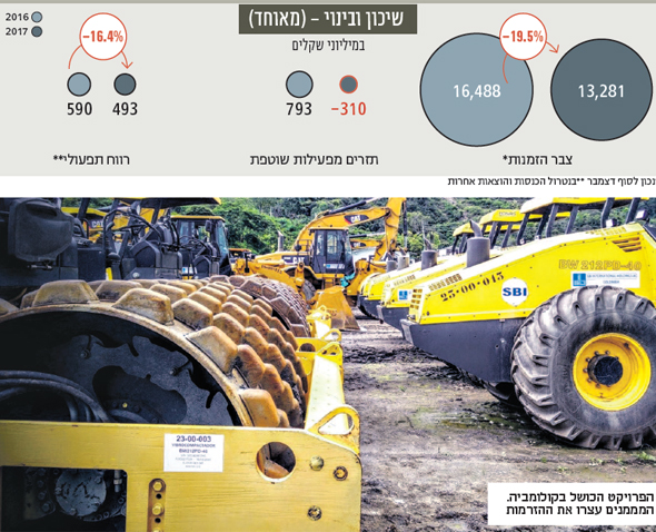 מנגד נרשמה ירידה בהכנסות חטיבת הבנייה ובהכנסות מפעילות חטיבת הכבישים, שמיוחסת בעיקר להתכווצות היקפי הביצוע בפרויקט הנחת מסילות בקווי הרכבת בצפון. כפועל יוצא מכל אלה, נרשם ב־2017 זינוק של 49% לעומת התקופה המקבילה ברווח מפעולות של מגזר קבלנות תשתית ובנייה בישראל, ל־123 מיליון שקל.