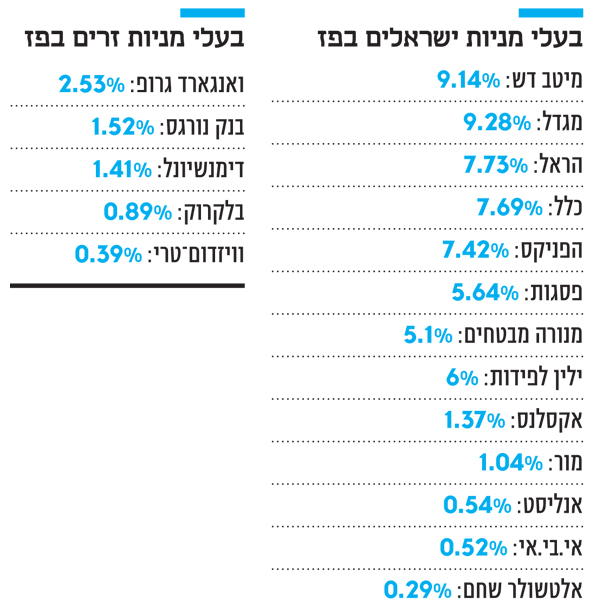 עד כה שמרו שאר המוסדיים בפז על שתיקה, ובהם הראל (7.73%), כלל (7.69%), הפניקס (7.42%) ומנורה (5.09%) — כולם משתמשים בשירותי אנטרופי.