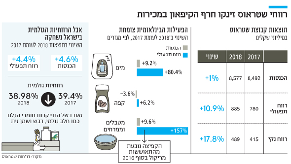 קבוצת שטראוס חתמה את 2018 עם זינוק של 17.8% ברווח הנקי, שהסתכם ב-489 מיליון שקל. הזינוק ברווחיות הושג למרות צמיחה של 1% בלבד במכירות, שהסתכמו ב-8.55 מיליארד שקל.