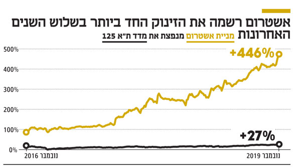 התוצאות הטובות של קבוצת אשטרום אינן חריגות, להיפך - מניית הקבוצה זינקה מתחילת השנה ב־182.6% לשווי שיא של 3.7 מיליארד שקל. מניית אשטרום מככבת במקום הראשון בתשואות במדד ת"א 125 גם ב־12 החודשים האחרונים, עם תשואה של 190.8%. אחריה ניתן למצוא בפער ניכר את אנלייט אנרגיה אשר עלתה ב־141%. מניית קבוצת אשטרום מככבת גם בראש טבלת התשואות במניות ת"א 125 בשנתיים האחרונות - עם תשואה של 267% ובשלוש השנים האחרונות - עם תשואה של 446%.