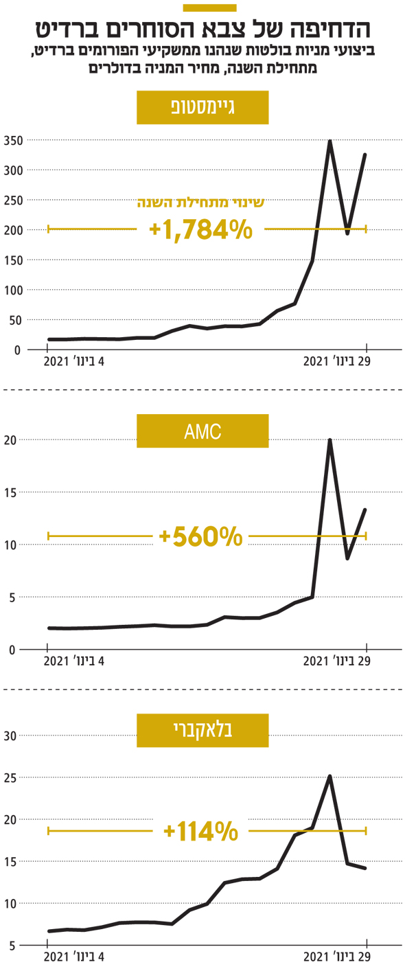 סיפור המלחמה שמתחולל כעת בבורסה הוא לא רק זה של מלחמת הדורות, של משקיעים צעירים שמנסים להעביר מסר לדור הבומרים. במובנים מסוימים זוהי לידתה של תנועה חברתית שלא במקרה יצאה לאוויר העולם בשלהי כהונתו של טראמפ בבית הלבן. אף שטראמפ עצמו קרוב יותר לאנשי וול סטריט וקרנות הגידור, הוא בנה סביבו נרטיב רובינהודי של מי שבא להיאבק באליטות הכסף הוותיקות. לאחר ההתקוממות האלימה בגבעת הקפיטול הרשתות החברתיות סוף־סוף פעלו וחסמו את חשבונותיו של טראמפ, במהלך השתקה נרחב שהצליח לצרום גם למי שרחוקים מלהימנות בין תומכיו. הפילוג שיצר טראמפ, ההקצנה בין תפיסות העולם המנוגדות והסלידה מהממסד ממשיכה ללוות את הציבור האמריקאי, ונראה שיש לה גם השפעה על המתרחש כעת.
