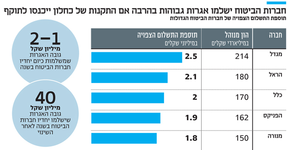 מתחשיב של הגופים המוסדיים עולה כי התקנות מכפילות פי 30 את גובה האגרות השנתיות שהם משלמים מ־1–2 מיליון שקל ברמה ענפית ל־40 מיליון שקל בשנה. רק לפני חצי שנה היה ניסיון של משרד האוצר להשית דרך חוק ההסדרים היטל בגובה עשרות מיליוני שקלים על חברות הביטוח כדי לממן הגדלה של סל התרופות, אך לבסוף המהלך טורפד על ידי שר הבריאות.