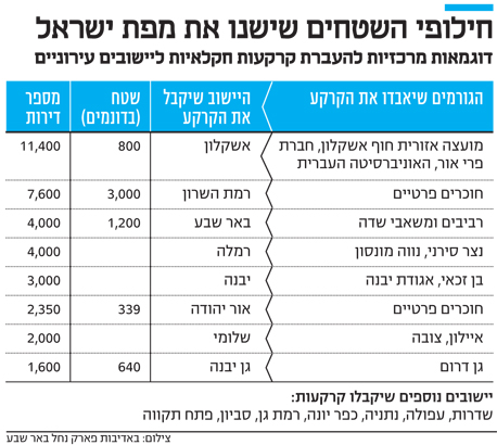 מאות חקלאים פרטיים, אגודות שיתופיות, מושבים וקיבוצים החלו לקבל בשבועות האחרונים מרשות מקרקעי ישראל (רמ"י) מכתב קצר בעל משמעות היסטורית. בהתאם לחוק שאושר במרץ האחרון, הם התבקשו להשיב לרמ"י את הקרקע החקלאית שהם מעבדים שכן המדינה מקדמת בה תוכנית בנייה שתשויך ליישוב העירוני הסמוך. ניסוח המכתב הלקוני אינו מסגיר את גודל המאורע: אחת מהפשרות הקרקע הגדולות בתולדות ישראל, שצפויה לשנות את פניה.