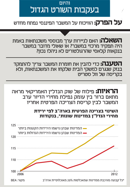 אבל גם מי שחושב שהלקח מהמשבר הוא שהרגולטורים צריכים לפקח על המערכת הפיננסית בקפידה, וגם מי שסבור שצריך לשנות את התמריצים של הבנקאים, מסכימים שהמשבר נולד במערכת הפיננסית. זאת בדיוק המציאות שהוויכוח על ההיסטוריה של המשבר מנסה לעמעם — ואולי לא במקרה.