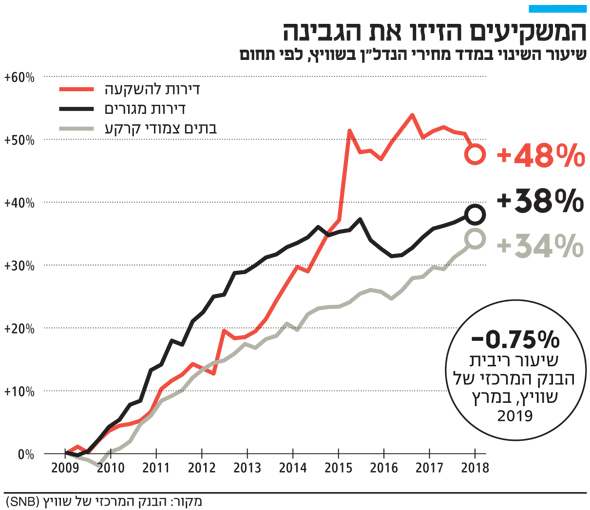 הסיכונים כבר היו גדולים דיים כדי לעורר את תשומת הלב של קרן המטבע הבינלאומית לפני חמש שנים, ומאז, הבנק המרכזי השוויצרי השית את שיעורי הריבית הנמוכים בעולם. במקביל, שיעורי ההגירה לשוויץ התייצבו, מה שהקפיץ את היקף הנכסים הפנויים לרמות שנראו בשנות ה־90 של המאה שעברה, אז התפוצצה בועת נדל"ן.