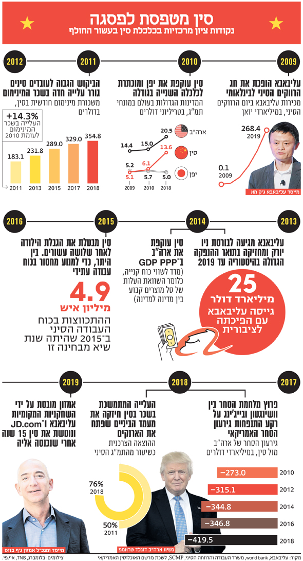 מהלכי הענישה שיצאו מהבית הלבן ושבמסגרתם הושתו מכסים על סחורות סיניות בהיקף של 550 מיליארד דולר משקפים את עוצמת האיום שמייחסת וושינגטון לבייג'ינג על מעמדה ככלכלה המובילה. העשור החולף הוכיח, כי החשש מעוגן במציאות.