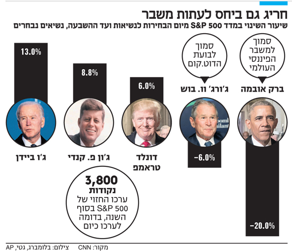 בעיצומה של מגפת הקורונה שממשיכה לגבות חיי אדם וברקע מבצעי התחסנות נרחבים, התקיים היום טקס השבעתו של נשיא ארה"ב ה־46 ג'ו ביידן. על אף חוסר הוודאות שעדיין מלווה מדינות ותעשיות, מאז הבחירות שהתקיימו ב־3 בנובמבר ועד ליום ההשבעה טיפס מדד S&P 500 בכמעט 13%, העלייה החדה ביותר שנרשמה בהשוואה לפרקי זמן מקבילים בקדנציות של נשיאים קודמים בארה"ב.