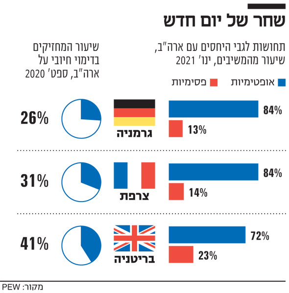 "הבעיות לא ייעלמו באופן אוטומטי", הדגיש פטר בייר, מתאם ממשלת גרמניה לקשרים טראנס־אטלנטיים, שצוטט אתמול ב"דויטשה וולה". "אבל יש כאן הזדמנות אמיתית לתקשורת בונה ולדיאלוג מכבד".